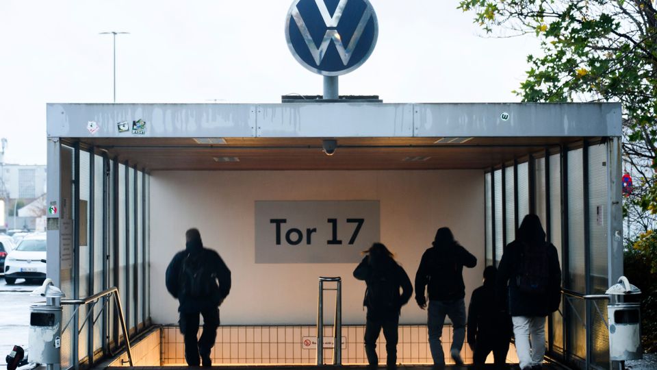 Mitarbeiter betreten durch das Tor 17 das Volkswagen-Stammwerk in Wolfsburg