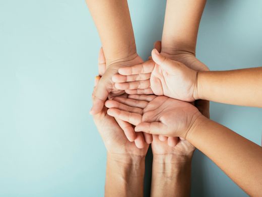 Hände von Eltern und Kindern: Sind die Partnerschaften kürzer,so die Hypothese,verringert das die Chance auf Kinder