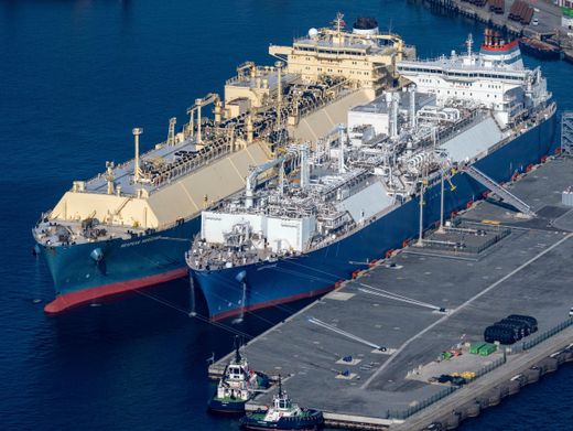 Flüssiggastanker im Hafen von Mukran auf Rügen: Methan entweicht entlang der Lieferkette
